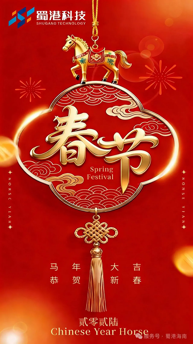 歲序更替,華章日新。當臘月的寒風裹挾著年味漸濃,2026丙午火馬年的蹄聲已清晰可聞。在這辭舊迎新、萬象更新的美好時刻,蜀港科技向每一位并肩同行的你,致以最誠摯的新春祝福與最衷心的感謝!